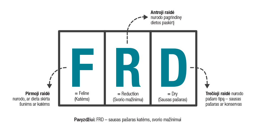 Mūsų produktai skirstomi pagal požymius. Skirtingi tos pačios paskirties produktai gali turėti tą patį pavadinimą, pavyzdžiui, alergijų turintiems šunims skirtas ėdalas (angl. pavadinimas Food Allergy Management). Visi ėdalai yra tinkami augintiniui, turinčiam alergijų ėdalui, tačiau pasižymi skirtingomis savybėmis, pavyzdžiui: